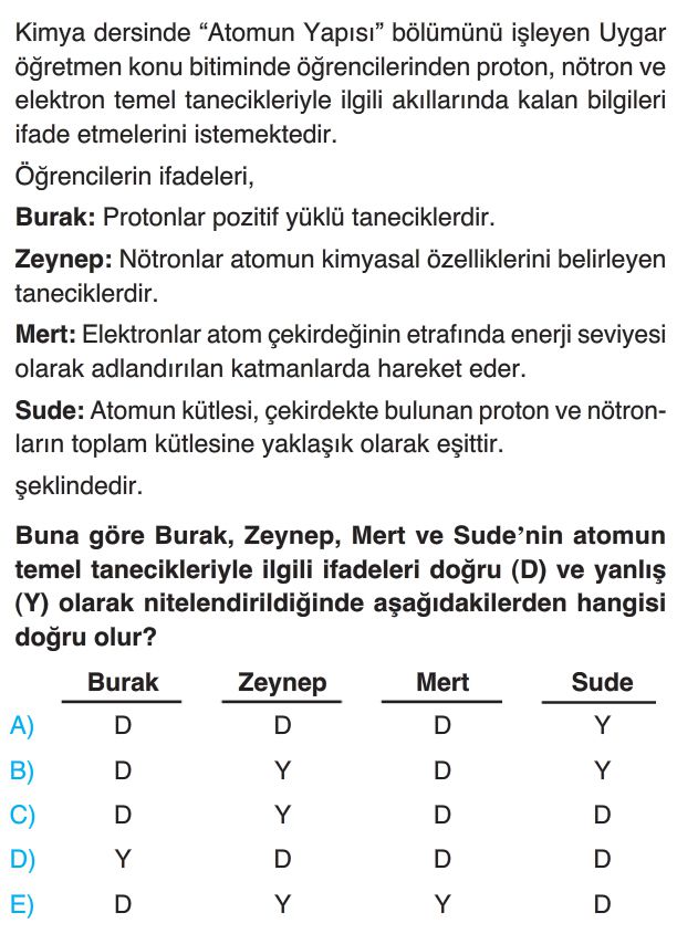 📝9. Sınıf Atomun Yapısı Test 2