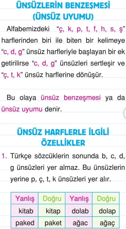 Aşağıdaki cümleleri okuyalım. Ünsüz benzeşmesi (ünsüz sertleşmesi) olan kelimeleri bulup defterimize yazalım.