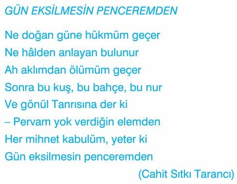 - Yalnızlık: İnsanların yaşadığı içsel yalnızlık ve bireysel buhranlar da şiirde sıkça karşılaşılan temalardandır.