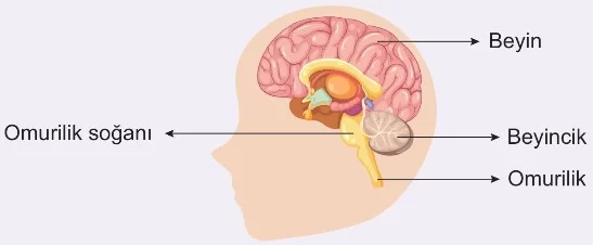 - Beyincik ve omurilik soğanı beynin kısımlarından olan merkezi sinir sistemi yapılarındandır.