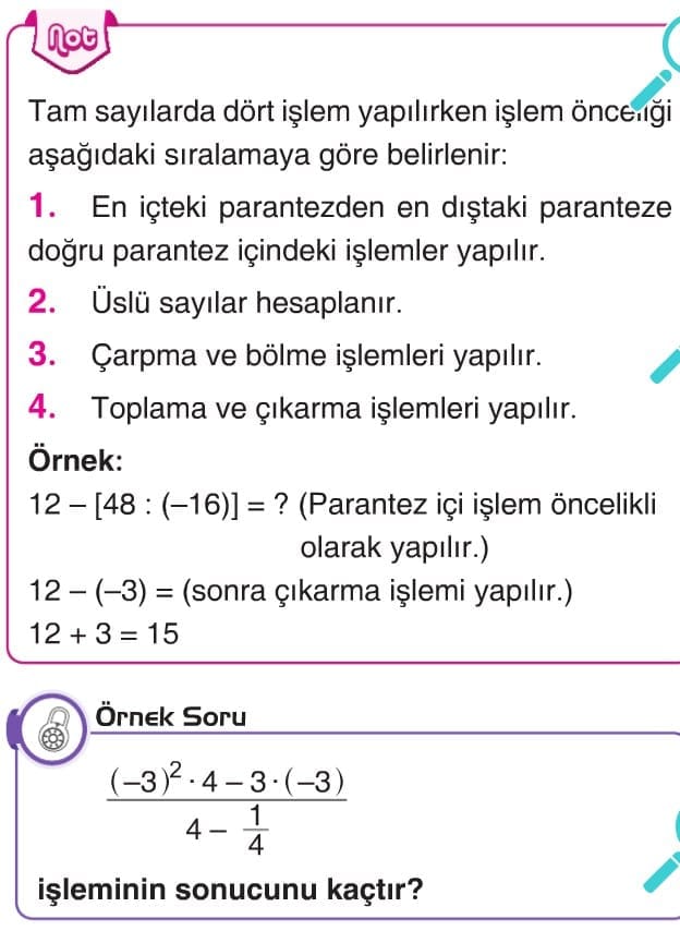 Tam Sayıların Kuvveti 7. Sınıf konu anlatımı testleri soruları çöz