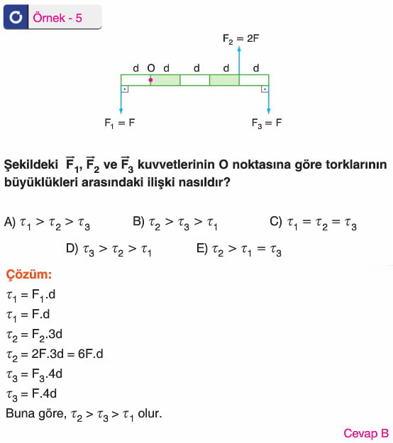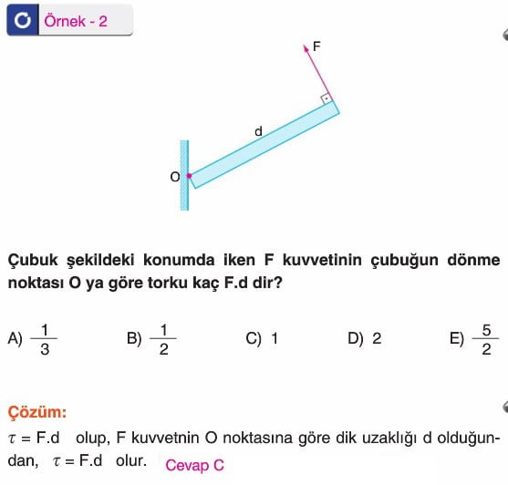 Çözüm: Tork = F x d = 8 N x 2 m = 16 Nm.