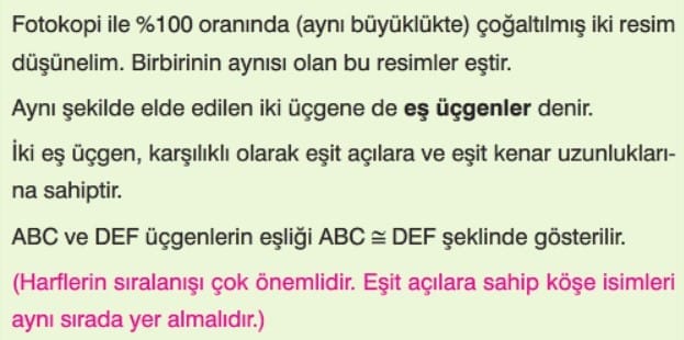 Üçgenlerde Eşlik (Üçgenlerin Eş Olma Koşulları) Ders Notu (Yeni Müfredat)