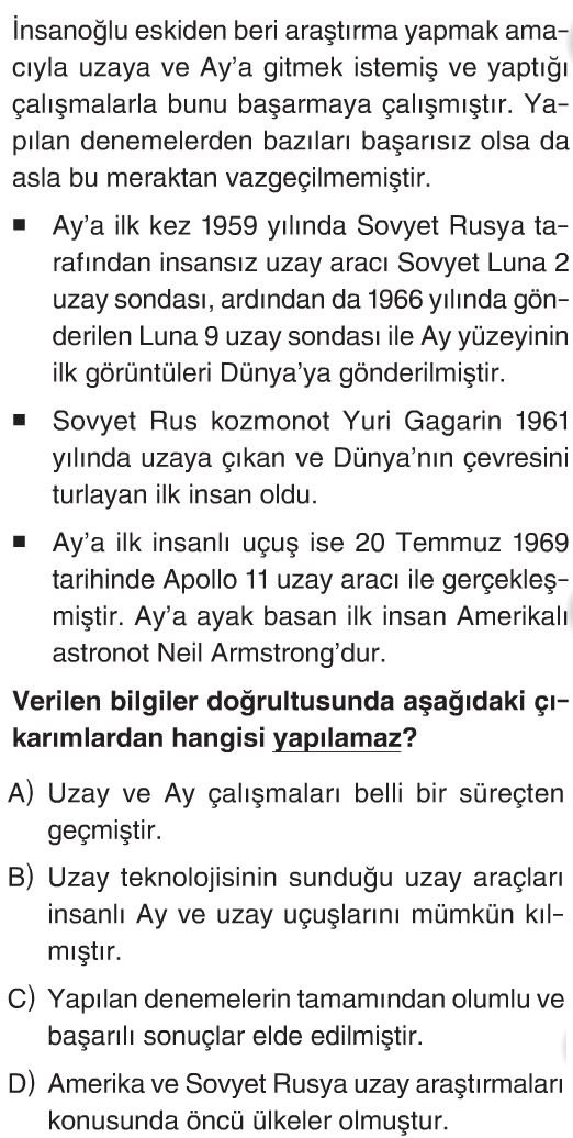 7. Sınıf Uzay Araştırmaları Test 9 Çöz