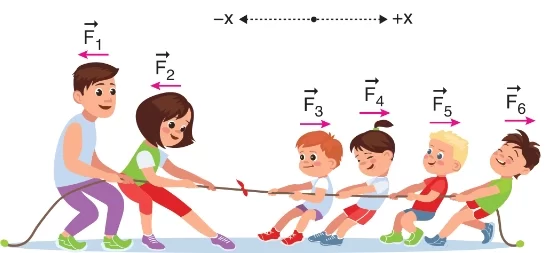 Şekilde baba ve anne ile çocukları halat çekme yarışı yapmaktadır. Baba 100 N, anne 70 N’lik kuvvetle halatı çekerken çocukları ise 60 N, 30 N, 40 N ve 50 N’lik kuvvetlerle halatı çekmektedir.
