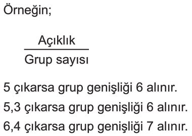 4. Grup genişliği hesaplanır. Grup genişliği Açıklık / Grup Sayısı değerinden büyük olan en küçük tam sayıdır.