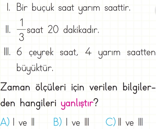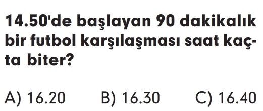 Soru: Çeyrek saatte yapılabilecek aktivitelere aşağıdakilerden hangisi uygun bir örnek olamaz?